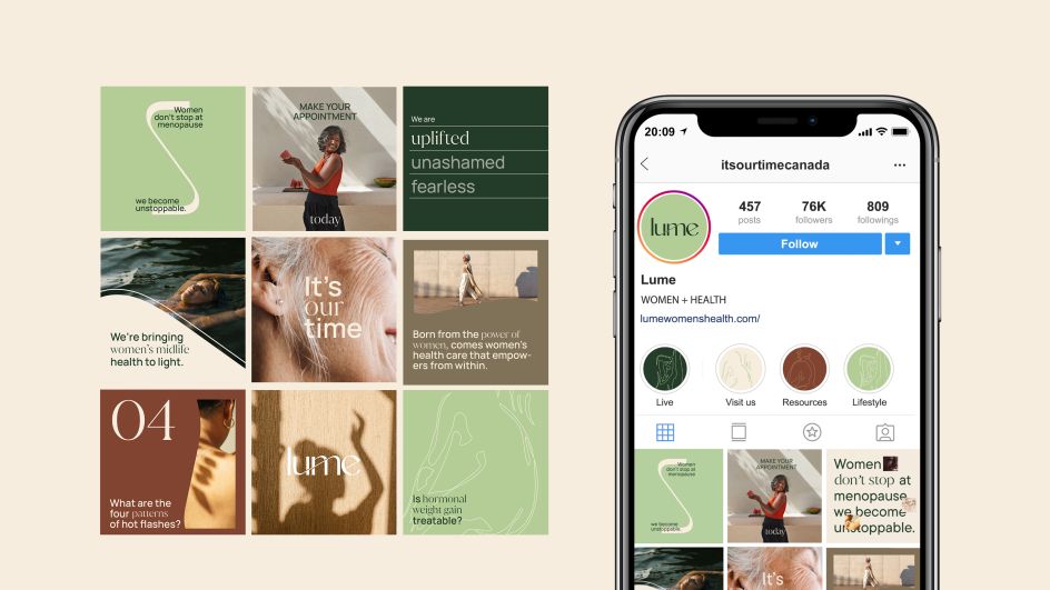 The visual language is reinforced through photography that quite literally plays with light and shadow. Soft glows and gentle contrasts reflect LUME's mission to bring midlife health out of obscurity and into clarity. The images feel intimate and real, avoiding overly polished stock models here in favour of a sense of humanity and grace.