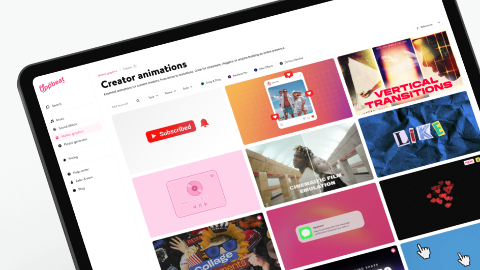 Looking for music, sound effects or motion graphics? Then check out Uppbeat. Designed specifically for content creators, this freemium platform's collection is highly curated, so you don't have to worry about finding the best stuff: it's all premium quality. It's all fully licensed, too, so legal worries and fears of YouTube demonetisation are a thing of the past.